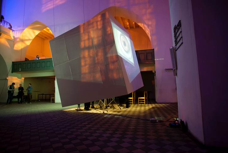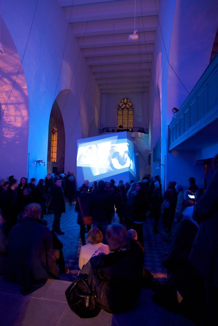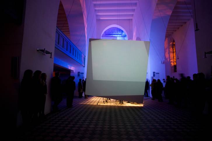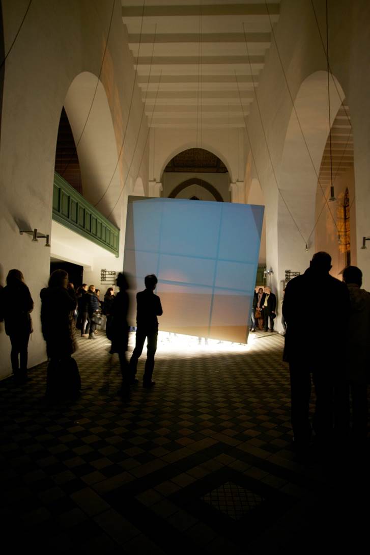 Das Projekt, gleichzeitig eine Installation und eine Performance, gibt nun Einblicke in den Stand vielfältiger Überlegungen, die während der gemeinsamen Arbeit zum Thema Raum und Musik angestellt wurden. Ziel war von Anfang an ein direkter interdisziplinärer Austausch, um gemeinsam neue Aktionsfelder auszuloten. Es wurden Standpunkte der jeweiligen Disziplin innerhalb des Arbeitsprozesses in Frage gestellt und abweichende Meinungen und widersprüchliche Sichtweisen als Teil einer komplexen, wechselseitigen, im Dialog entstandenen Annäherung zum gestellten Thema gesehen. Um einen gemeinsamen „bespielbaren“ Raum zu schaffen, haben die Studierenden in den physischen Raum der Kirche eingegriffen und einen bestimmen Bereich davon markiert: Entwickelt wurde ein Kubus als raumdefinierendes Element, der Masse und Leere abbildet. Die Masse des Kubus steht als Gegenmaß zu dem voluminösen Kirchenraum, die Leere des Raumes als Resonanzvolumen, das mit Klängen und Licht gefüllt wird, und den Ort in seiner Ganzheit neu interpretiert und somit neu erfahrbar macht. In der Ausarbeitung ihrer Ideen loteten die jungen Künstler sowohl die besonderen architektonischen und akustischen Bedingungen des Raums wie auch die bedeutungsgeladenen Assoziationen aus, die den Betrachter und Hörer beim Erleben eines Kirchenraums begleiten. Eine auf die neu gestaltete architektonische Situation bezogene Lichtchoreografie inszeniert Raum und Objekt in immer neuen Variationen, und diese ist wiederum mit musikalischen Abläufen und Ereignissen, die für den Anlass von Studierenden komponiert wurde, aufs engste verwoben. So erscheint der altehrwürdige Kirchenraum in ganz neuem ‚Licht‘ - und Klang.