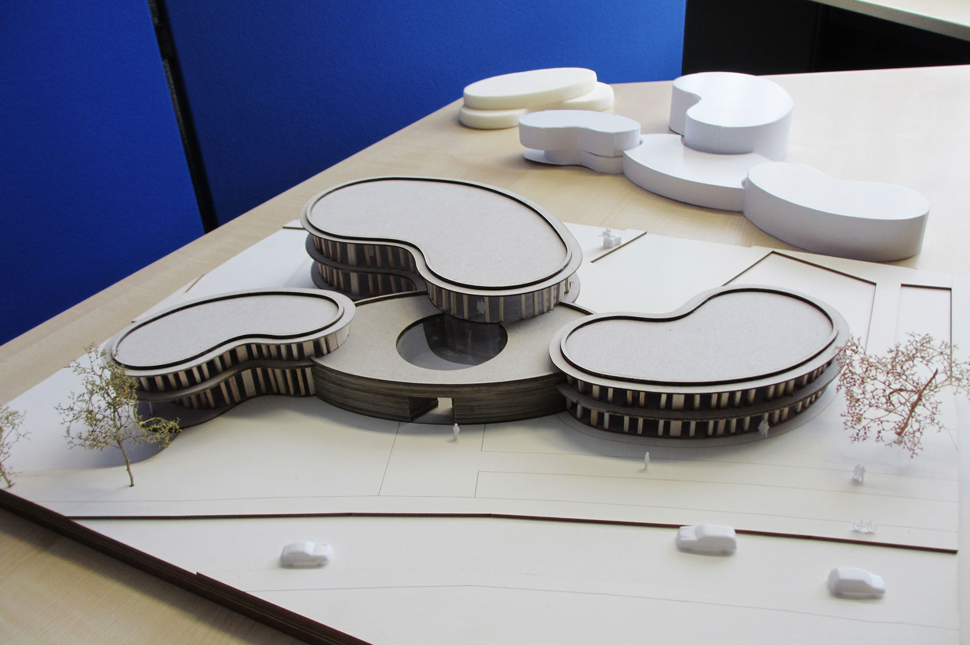 Und was sagt der Kunde zu dem Kooperationsprojekt? „Ich finde es genial, was man aus Gedanken alles entwickeln kann“, lobt Daniel Fey die Masterentwürfe. „Mir gefällt die Zusammenarbeit mit dem BLB NRW sehr gut. Wir halten uns gegenseitig informiert und verfolgen gemeinsam ein Ziel – für die Mitarbeiter, die Anwohner und Besucher ein neues, attraktives Kompetenzzentrum zu schaffen. Somit halten wir auch eine sehr zukunftsweisende Zusammenarbeit.“