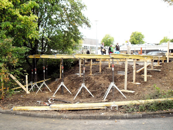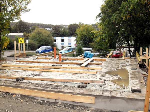 Der über den Hang ragende kubische Baukörper wird durch filigrane Stützen von nur 73 mm (in Worten Millimeter) "Breite" aus ultrahochfestem Beton getragen. Die Stützen sind eine Entwicklung der Firma Dyckerhoff in Zusammenarbeit mit dem Fachgebiet Bauchemie von Prof. Dr. Reinhard Trettin der Universität Siegen und der Bauunternehmens Drössler (Siegen).