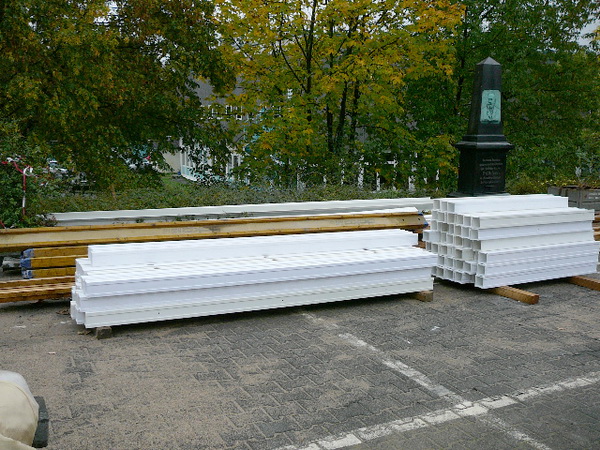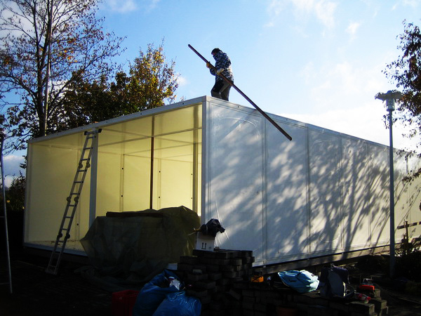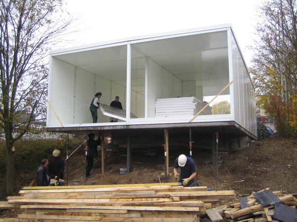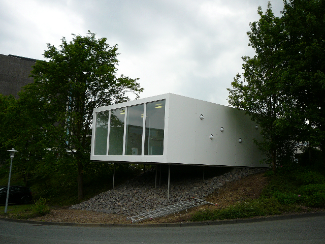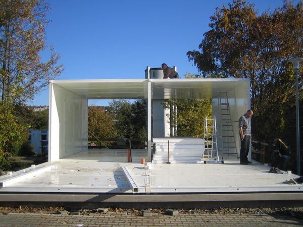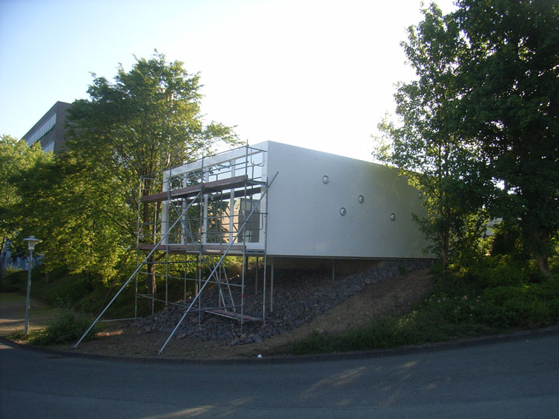 Oberhalb der Bodenplatte besteht der Baukörper (mit Ausnahme der Glasscheiben) komplett aus Kunststoff. Die tragenden Elemente bestehen aus glasfaserverstärkten Kunststoffprofilen, welche mit Sandwichelementen aus Polystyrol und Glasfasergelegen ausgefacht wurden. Entwickelt wurde das Gebäude in Zusammenarbeit mit der Firma R/S BauTec (Wuppertal)